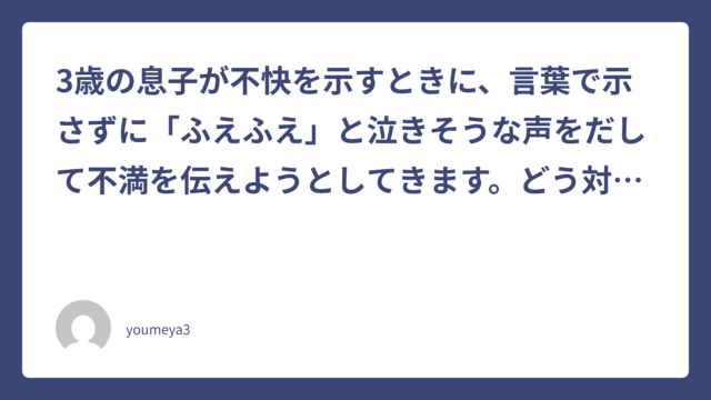 3歳の息子が不快を示すときに、言葉で示さずに「ふえふえ」と泣きそうな声をだして不満を伝えようとしてきます。どう対処するのが良いのでしょうか?